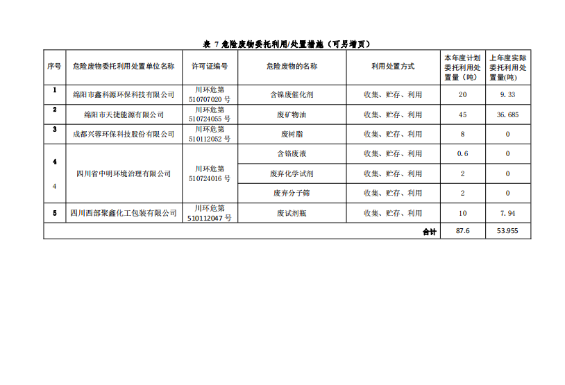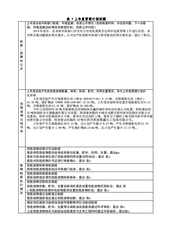 天華2020年度危廢管理計劃