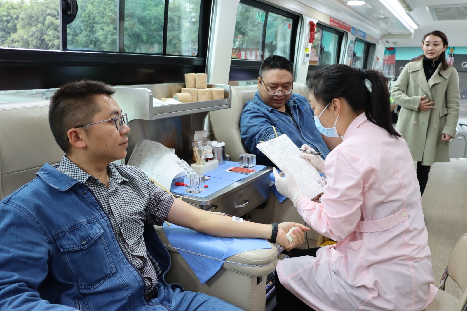 陽春三月,天氣雖然還有些寒冷,但春寒沒能阻擋天華人獻血的熱情。在醫務人員的引導下,來自集團職能部門和生產車間的職工列隊接受中心血站安排的獻血準備工作。參與獻血的志愿者有集團高層領導,也有中層管理人員和一線職工。大家認真填寫獻血登記表、測量血壓、配合抽血化驗等,在確定符合獻血條件后依次登上采血車接受采血。